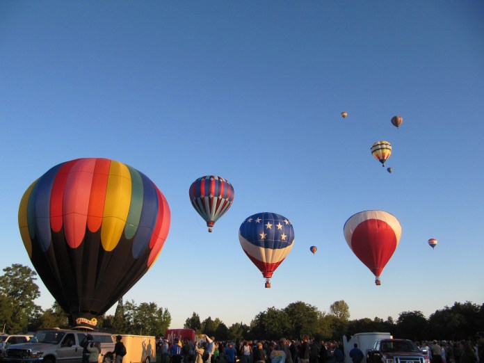 Several hot air balloons lift off from Ann Morrison Park in Boise,Idahoon Saturday, Sept. 3, 2011 as part of the Spirit of Boise Balloon Classic event. (AP Photo/Jessie L. Bonner)