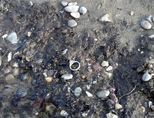 This Monday July 23, 2012 cell phone photo provided by Emily Geislery shows a platinum Princess cut diamond ring belonging to Necia Rasmussen that washed up on the shore of Rigby Lake in Idaho and found by Geisler while she was kayaking _ four years after it went missing. (AP Photo/Courtesy Emily Geisler)