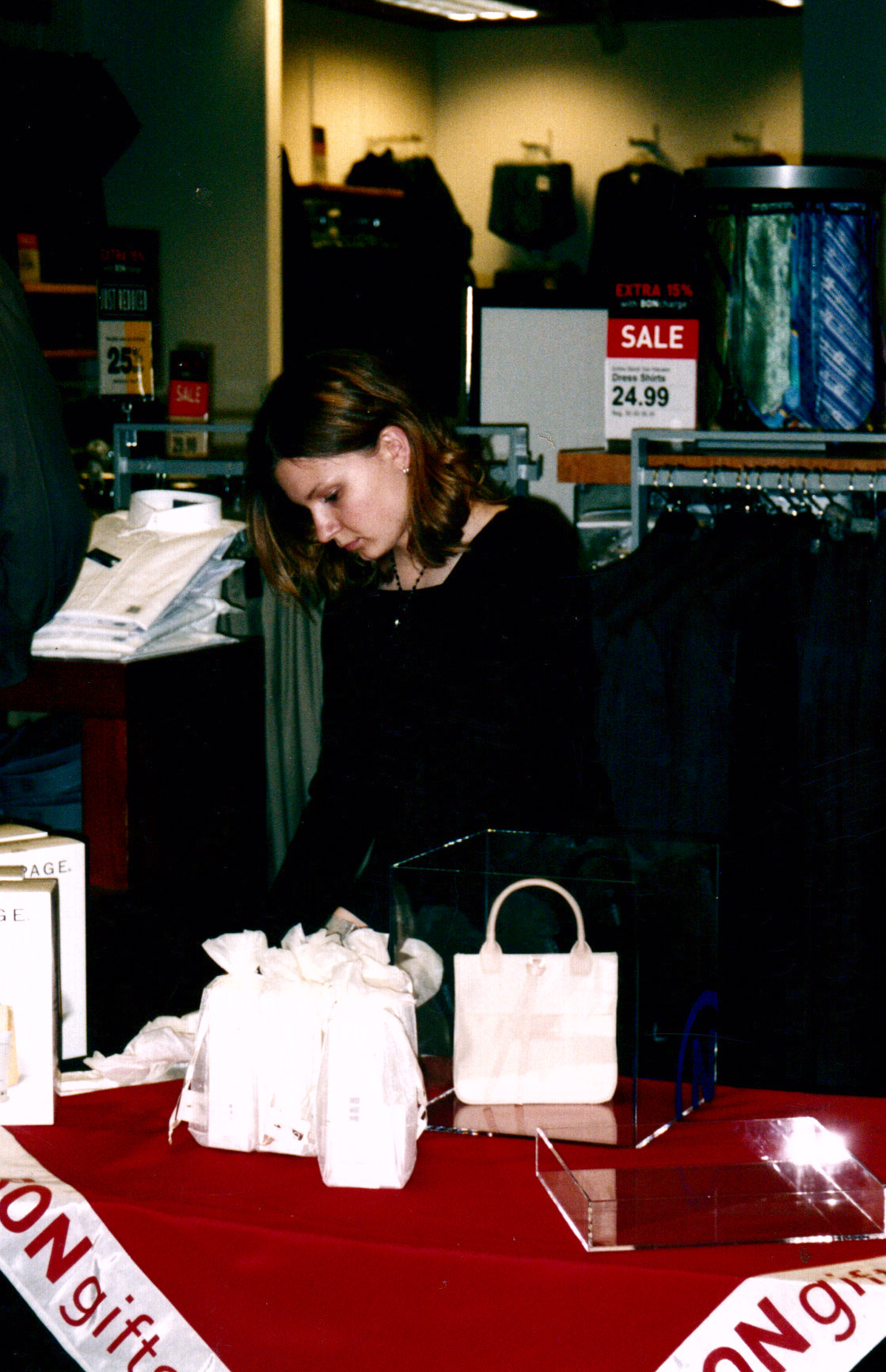 (I have no idea why this photo of me working at said department store exists, if only to prove that I actually worked there.)