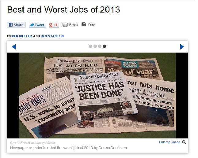 I learned something from each of these jobs I’ve mentioned, and chief among them is that strange little word that means so much right now in our profession: Versatility. You can no longer just be a writer, you need to be able to shoot photo, and video, and do it all at once. You need to be hungry to learn and quick to catch on, because standing right behind you is a recent graduate who has been well-schooled in multimedia and has a lot less to choose from than you did when scouring journalismjobs.com for postings.